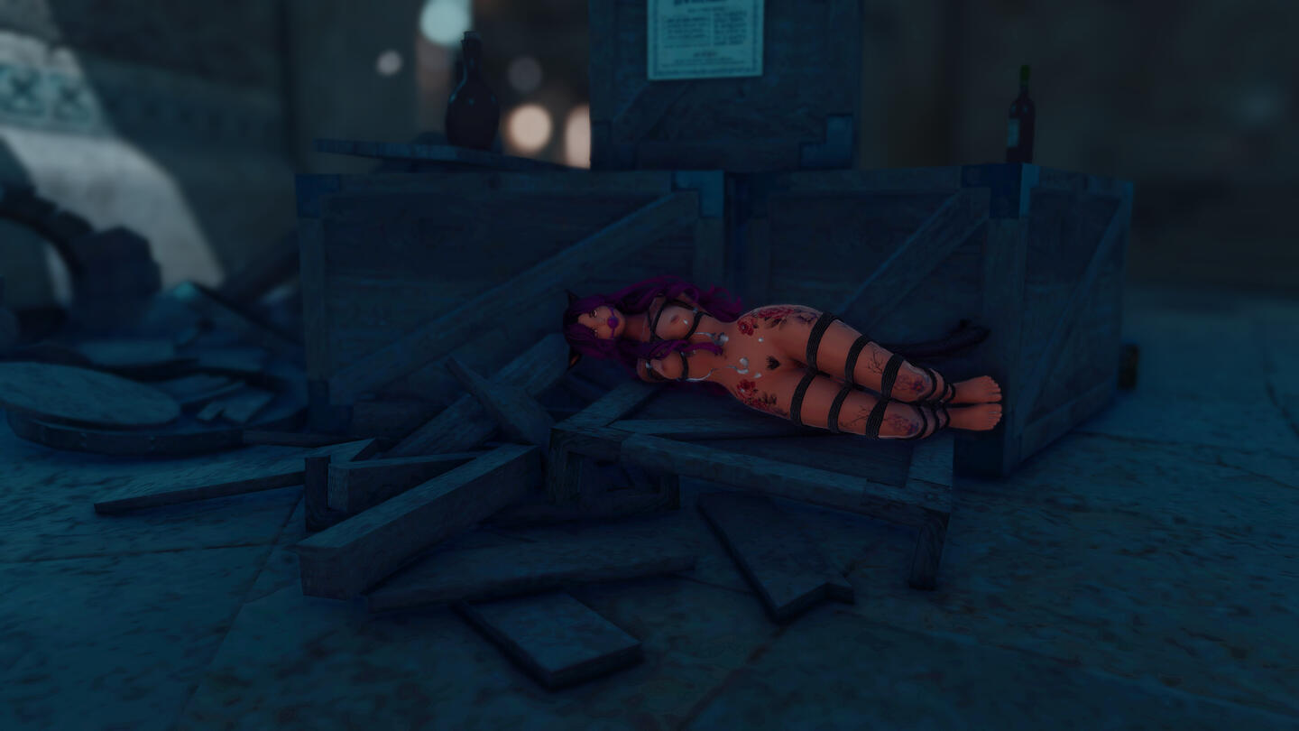 Moving to kneel next to her as he sets the bindings down, It was quick, The slap to her face. The grip, hard, unforgiving in her hair to wrench her head back and lifting her up, with her weak... he would force past any resistance... and shove that gag home. "Then lets fix that little problem"