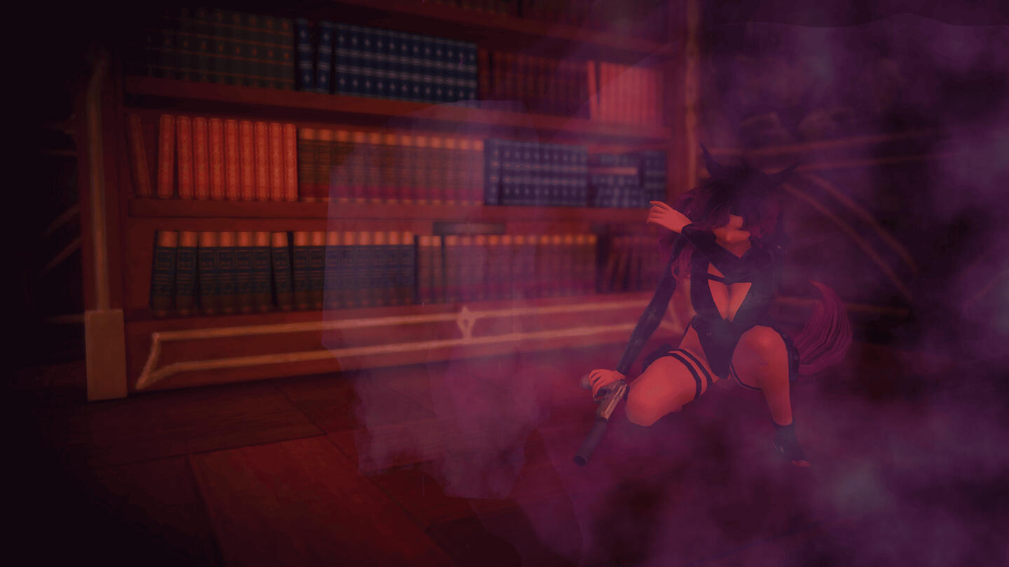 She then looks straight at the fireplace, not seeing a tapestry there would alarm her and she would keep her hand on the trigger while her eyes were open for any traps, she would move slowly to the bookshelf to look for any traces of a tapestry, thinking maybe it had been placed in a different spot.